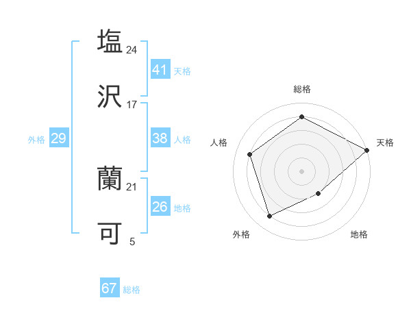塩沢 蘭可さんを姓名の画数から五運を鑑定