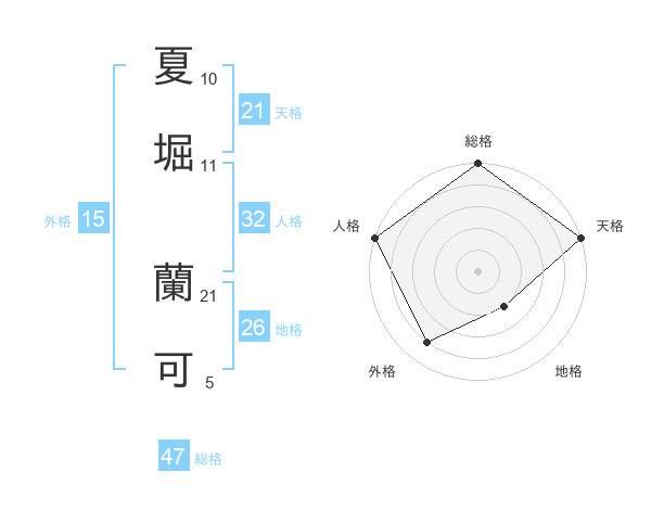 夏堀 蘭可さんを姓名の画数から五運を鑑定