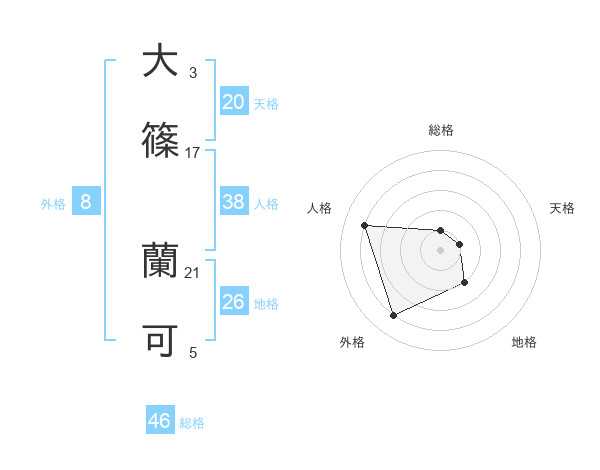 大篠 蘭可さんの天格は20画の1点!