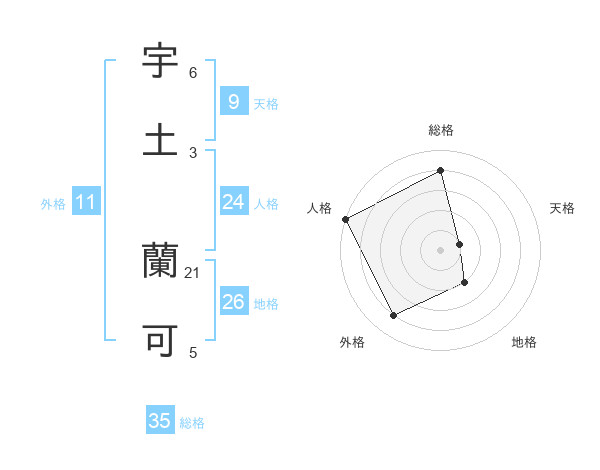 宇土 蘭可さんの総格は35画の4点!