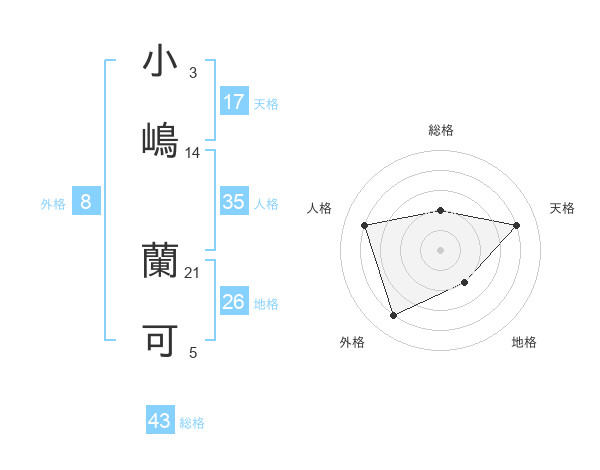 小嶋 蘭可さんの天格は17画の4点!