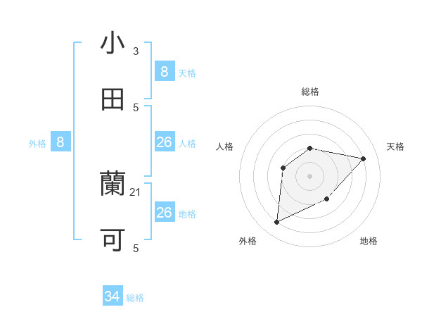 小田 蘭可さんを姓名の画数から五運を鑑定