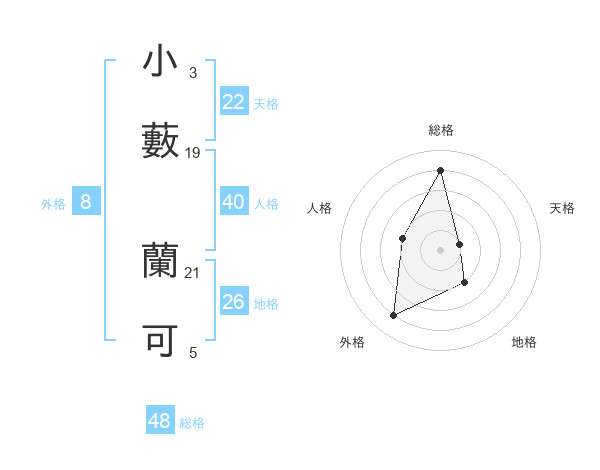 小藪 蘭可さんの総格は48画の4点!