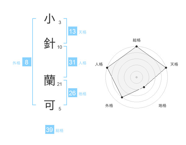 小針 蘭可さんを姓名の画数から五運を鑑定