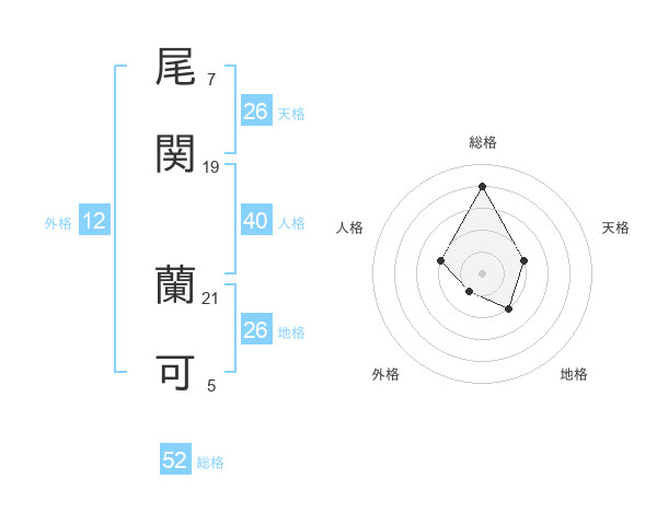 尾関 蘭可さんの総格は52画の4点!