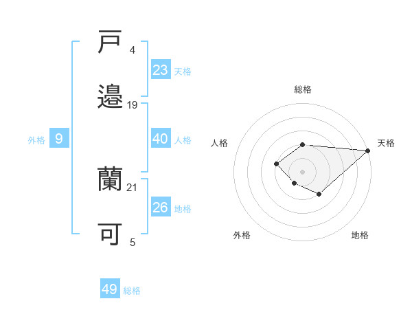 戸邉 蘭可さんを姓名の画数から五運を鑑定