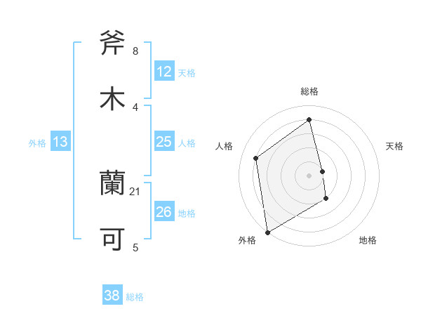斧木 蘭可さんを姓名の画数から五運を鑑定