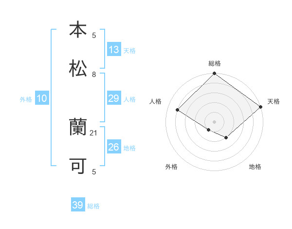 本松 蘭可さんを姓名の画数から五運を鑑定
