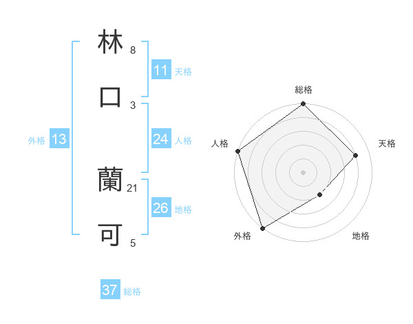 林口 蘭可さんを姓名の画数から五運を鑑定