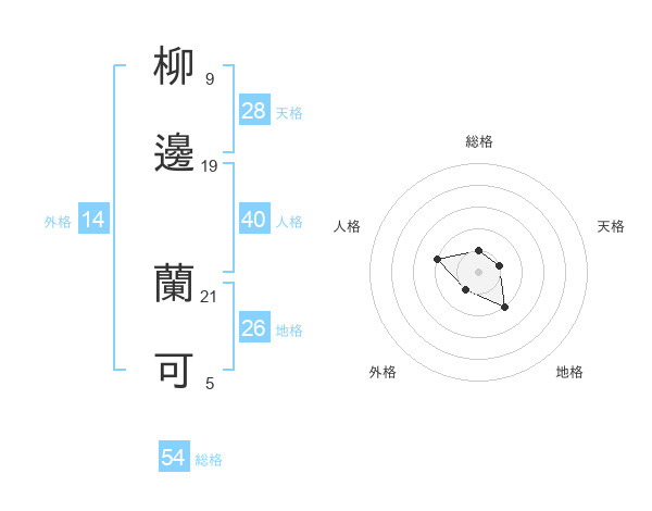 柳邊 蘭可さんの総格は54画の1点!