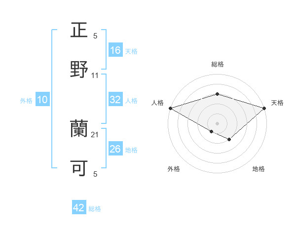 正野 蘭可さんを姓名の画数から五運を鑑定