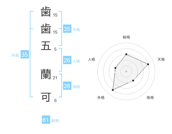 歯歯五 蘭可さんの総格は61画の3点!