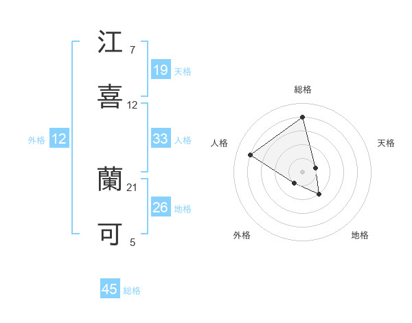 江喜 蘭可さんの総格は45画の4点!