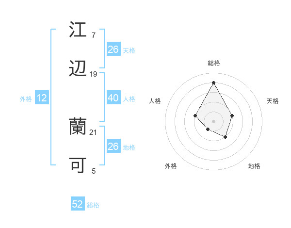 江辺 蘭可さんの総格は52画の4点!