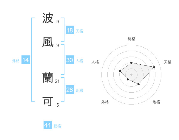 波風 蘭可さんの天格は18画の4点!