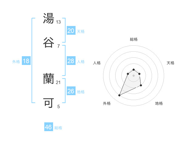 湯谷 蘭可さんを姓名の画数から五運を鑑定