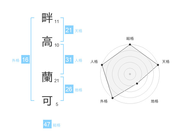 畔高 蘭可さんを姓名の画数から五運を鑑定