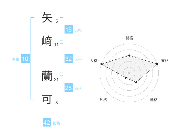 矢﨑 蘭可さんの天格は16画の5点!
