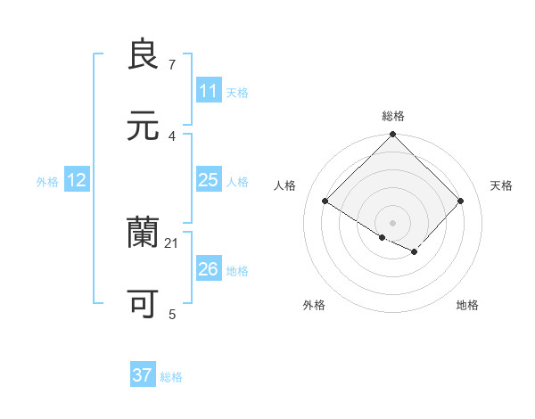 良元 蘭可さんの総格は37画の5点!