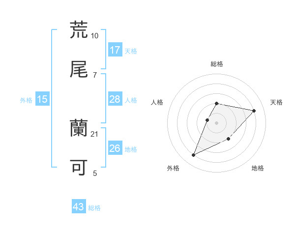 荒尾 蘭可さんの天格は17画の4点!