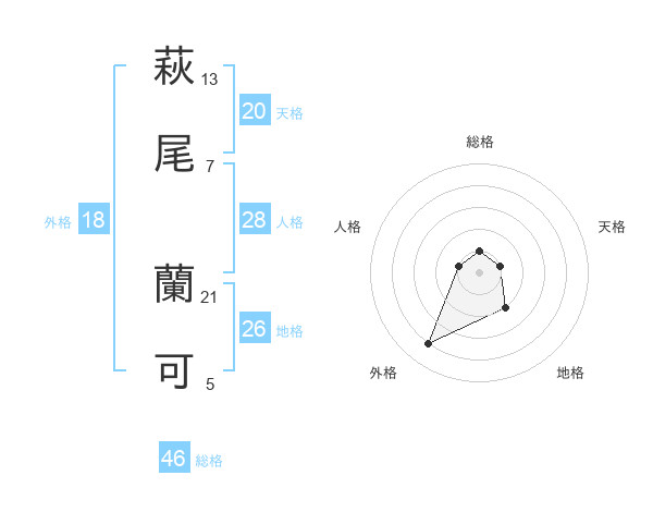 萩尾 蘭可さんを姓名の画数から五運を鑑定