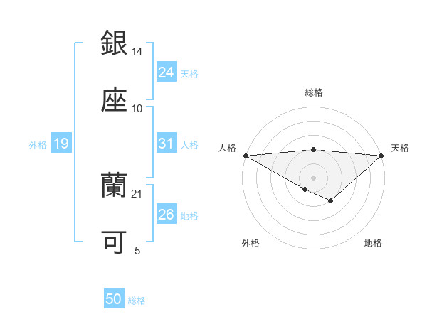銀座 蘭可さんを姓名の画数から五運を鑑定