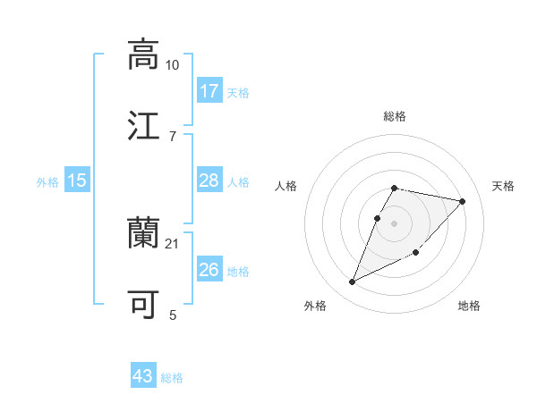 高江 蘭可さんの天格は17画の4点!