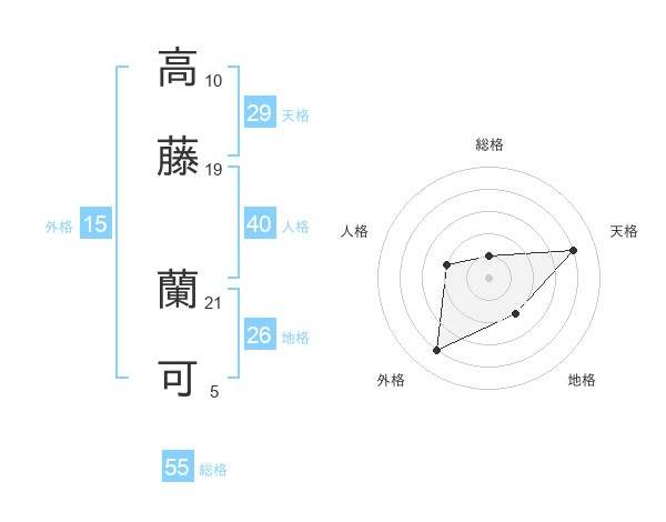 高藤 蘭可さんの外格は15画の4点!