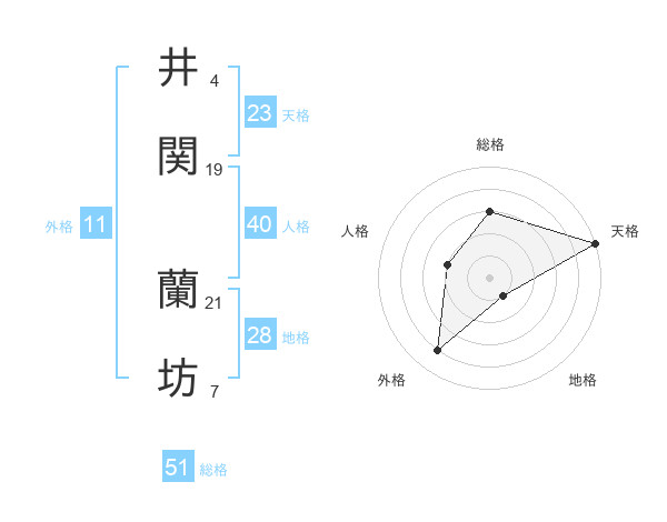 井関 蘭坊さんの総格は51画の3点!