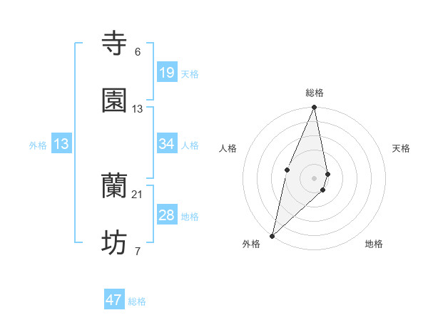 寺園 蘭坊さんを姓名の画数から五運を鑑定