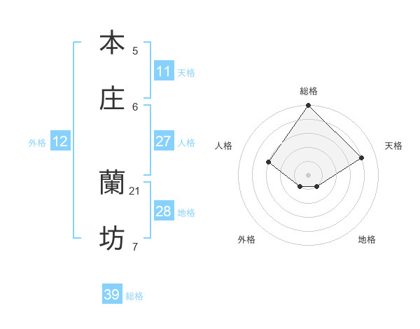 本庄 蘭坊さんを姓名の画数から五運を鑑定