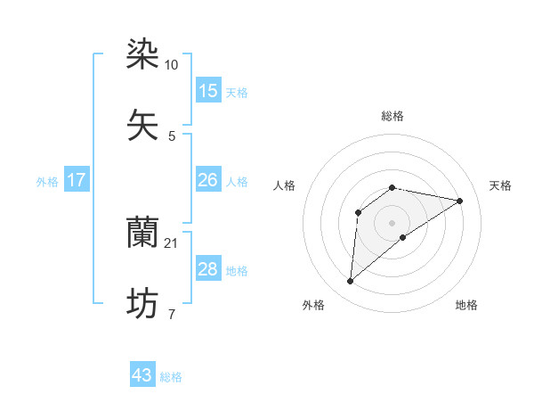 染矢 蘭坊さんの総格は43画の2点!