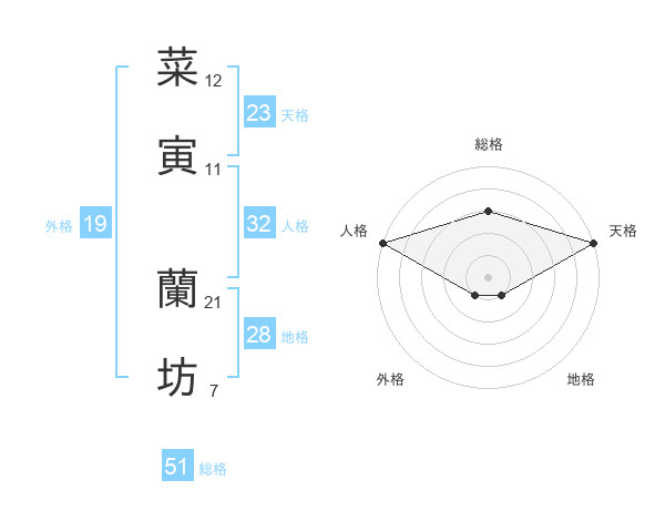 菜寅 蘭坊さんの総格は51画の3点!