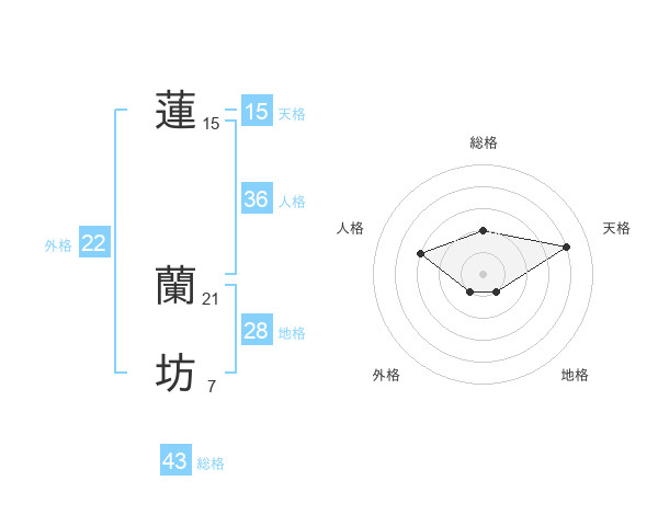 蓮 蘭坊さんの総格は43画の2点!