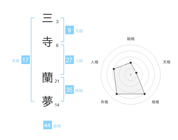 三寺 蘭夢さんを姓名の画数から五運を鑑定