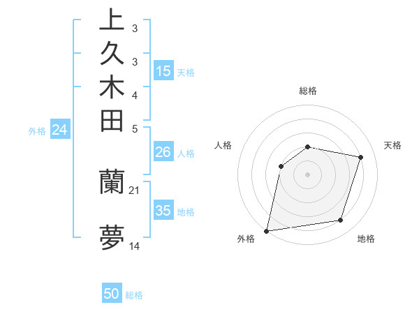 上久木田 蘭夢さんを姓名の画数から五運を鑑定