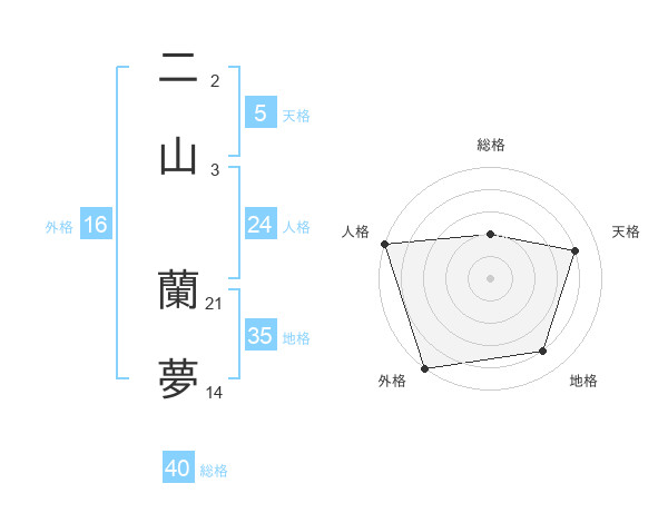 二山 蘭夢さんの外格は16画の5点!