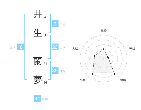 井生 蘭夢さんの総格は44画の2点!
