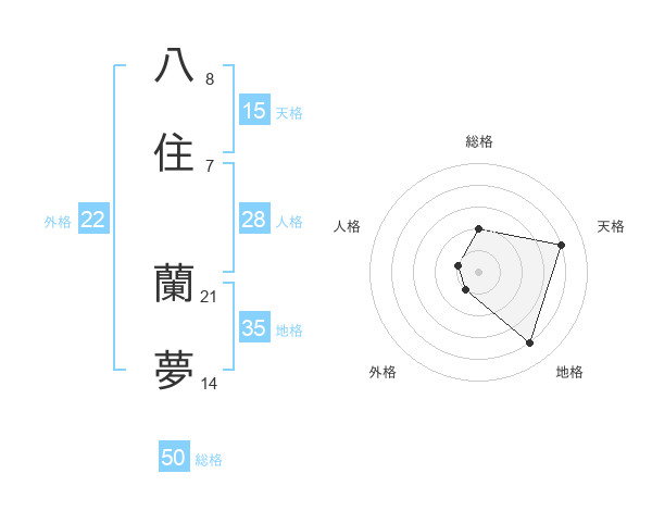八住 蘭夢さんの総格は50画の2点!