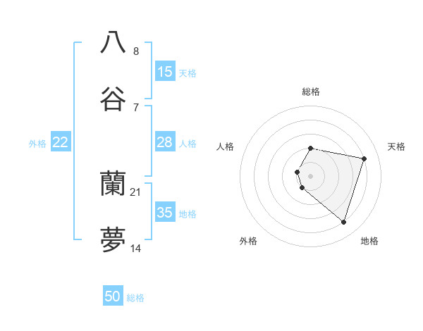 八谷 蘭夢さんの総格は50画の2点!