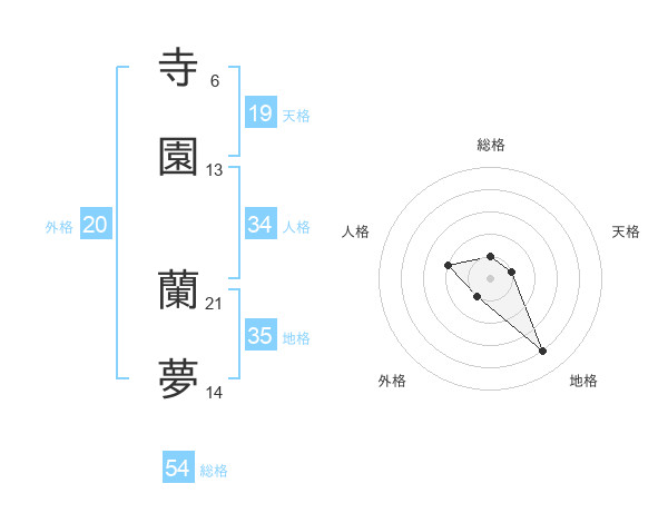 寺園 蘭夢さんの外格は20画の1点!