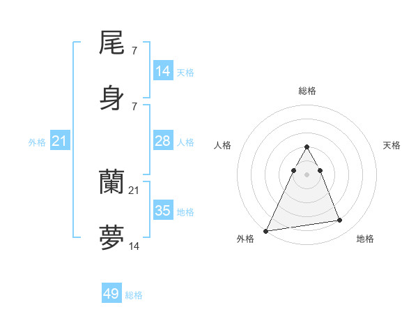 尾身 蘭夢さんを姓名の画数から五運を鑑定