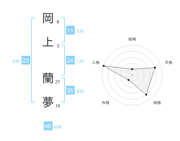 岡上 蘭夢さんを姓名の画数から五運を鑑定