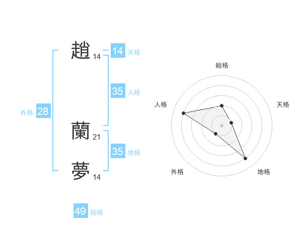 趙 蘭夢さんの総格は49画の2点!