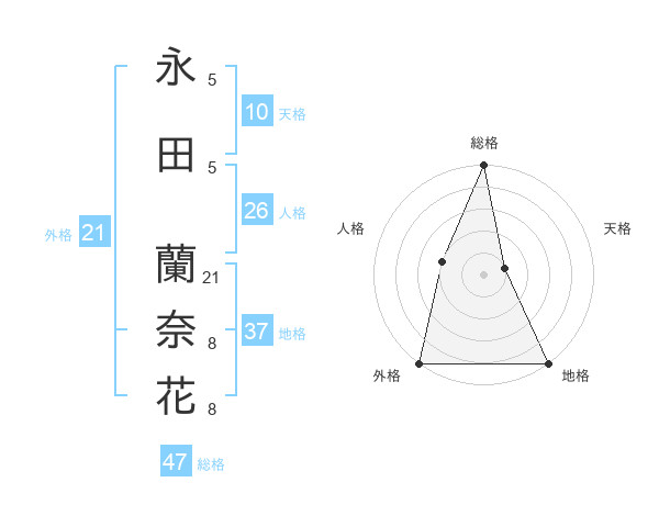 永田 蘭奈花さんを姓名の画数から五運を鑑定