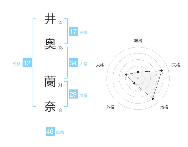 井奥 蘭奈さんを姓名の画数から五運を鑑定