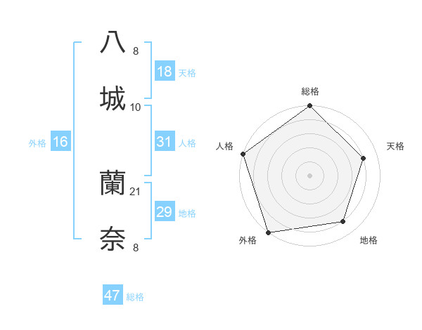 八城 蘭奈さんを姓名の画数から五運を鑑定