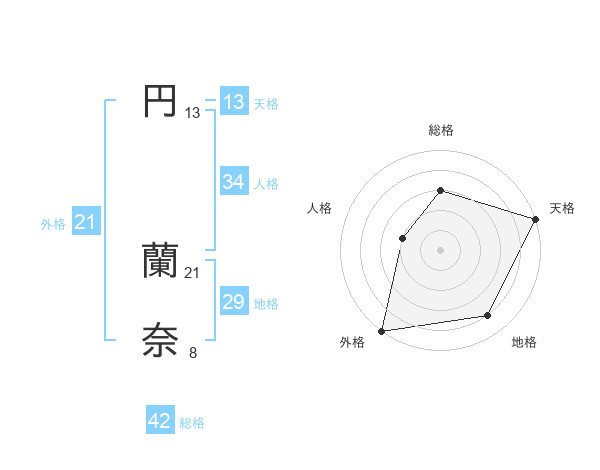 円 蘭奈さんの外格は21画の5点!