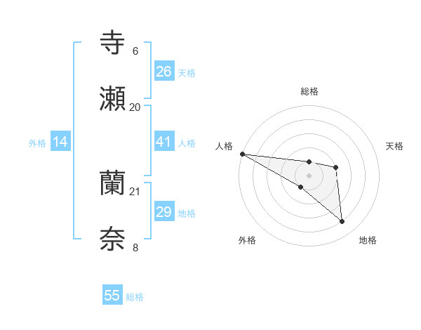 寺瀬 蘭奈さんの天格は26画の2点!