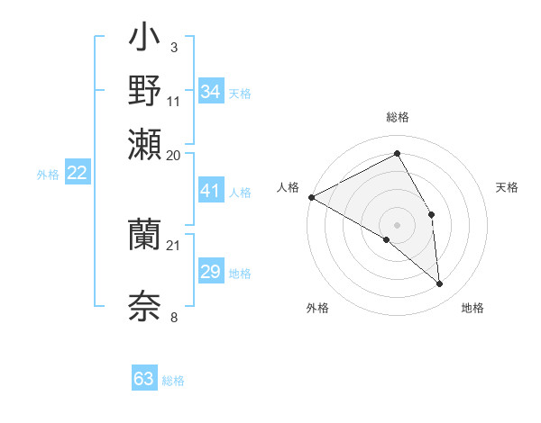 小野瀬 蘭奈さんを姓名の画数から五運を鑑定